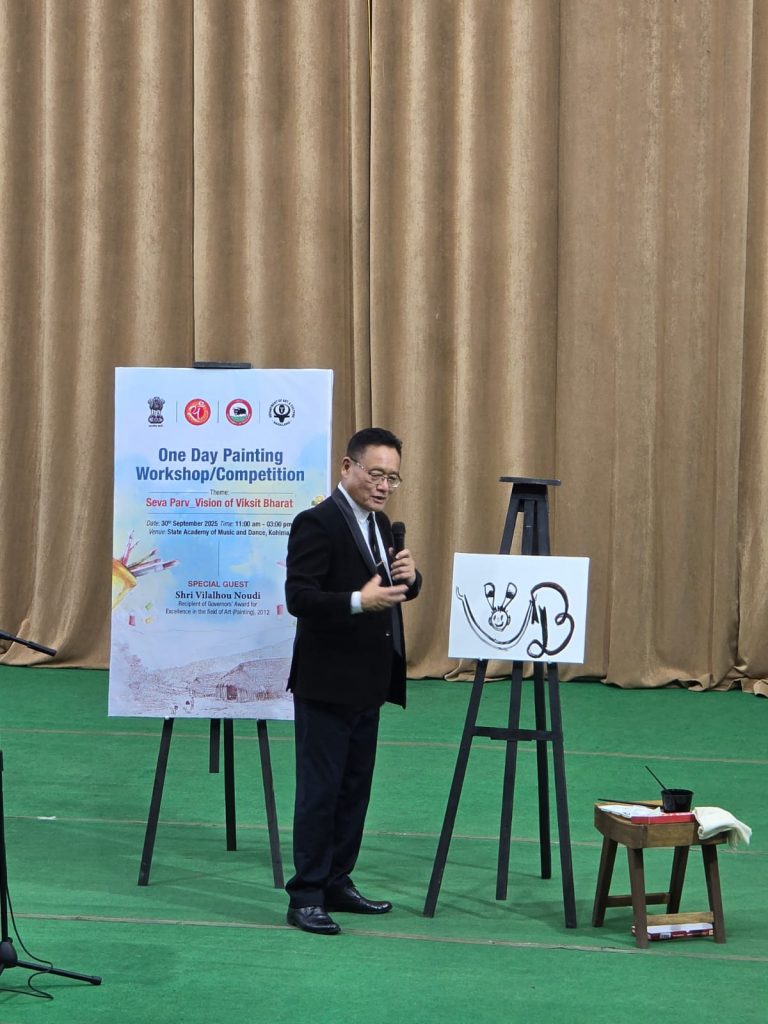 A one day painting workshop / Competition was held on 30th September, 2025, at the State Academy of Music & Dance, organised by the Department of Art & Culture, Nagaland, on the theme, ‘Seva Parv – Vision of Viksit Bharat’.